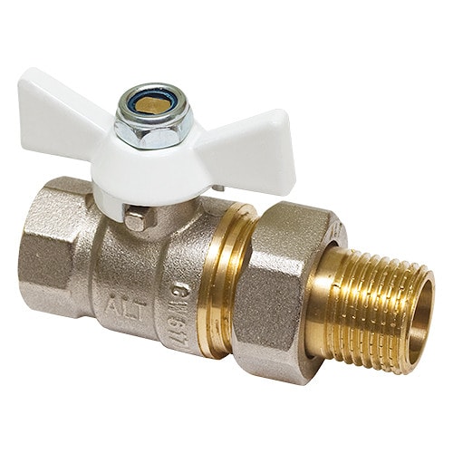 Кран шаровой ALTSTREAM с накидной гайкой прямой, белая ручка-бабочка, полный проход.