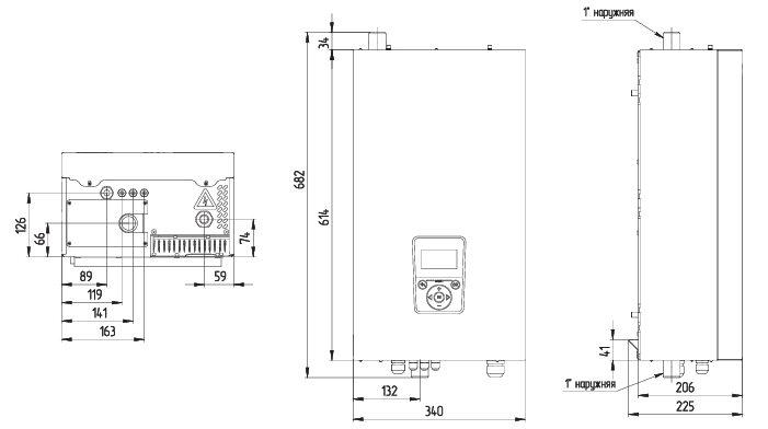 Монтажные размеры электрокотла Зота Солид.
