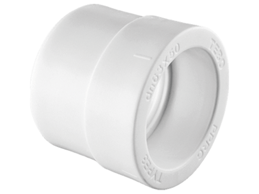 Купить пропиленовую муфту переходную белого или серого цвета TEBO в Минске по лучшей цене первого поставщика у нас - Инжиниринговая компания ТеплоСтройИнвест.