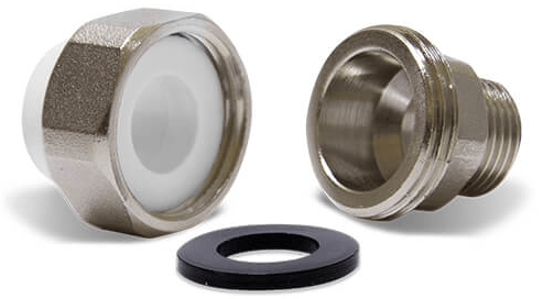 Купить комбинированную разъемную муфту наружная резьба пропиленовая серого / белого цвета TEBO в Минске по лучшей цене первого поставщика у нас - Инжиниринговая компания ТеплоСтройИнвест.