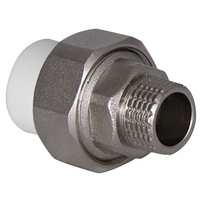 Муфта комбинированная разъемная с наружной резьбой предназначена для перехода с полипропиленовой трубы на трубную резьбу.
