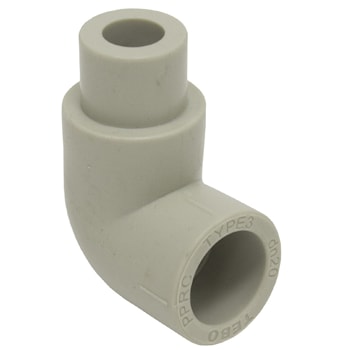 Угольник TEBO 90° переходной внутренний - наружный из полипропилена белого / серого цвета.