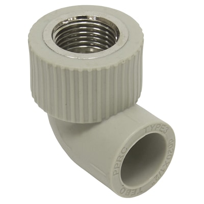 Купить угольник комбинированный TEBO внутренняя резьба из полипропилена белого или серого цвета в Минске по лучшей цене первого поставщика у нас - Инжиниринговая компания ТеплоСтройИнвест.