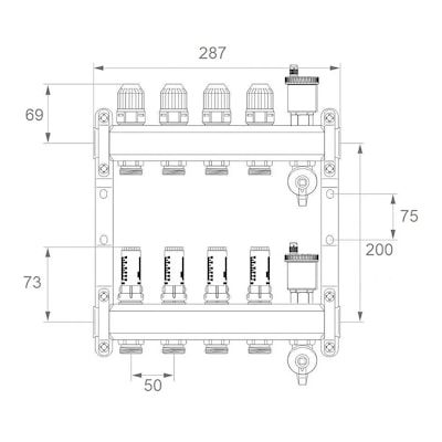 Коллекторная группа ONDO 4 выхода с автом. воздухоотводчиком, расходомерами арт. OKGSET04A