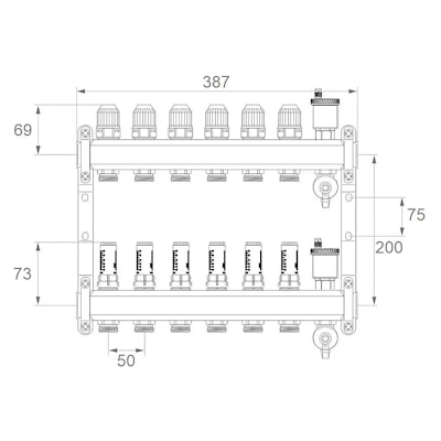 Поставляется в собранном виде: Коллекторная группа поставляется предварительно в собранном виде, что упрощает её установку. Автоматический воздухоотводчик и дренажный кран уже встроены в корпус, что дополнительно упрощает монтаж и эксплуатацию.