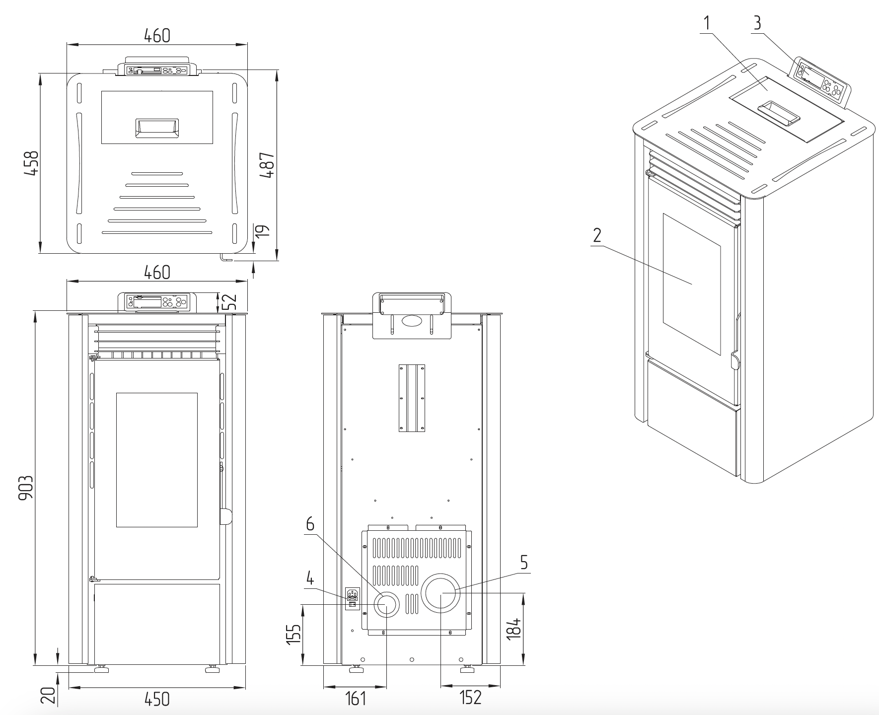 | Присоединительный размер дымохода, мм | 80 |