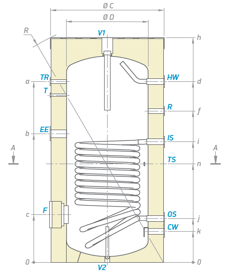 - Предусмотрена установка дополнительного ТЭНа (Ø 48 мм) - позволяет организовать комбинированную систему нагрева с резервным источником.