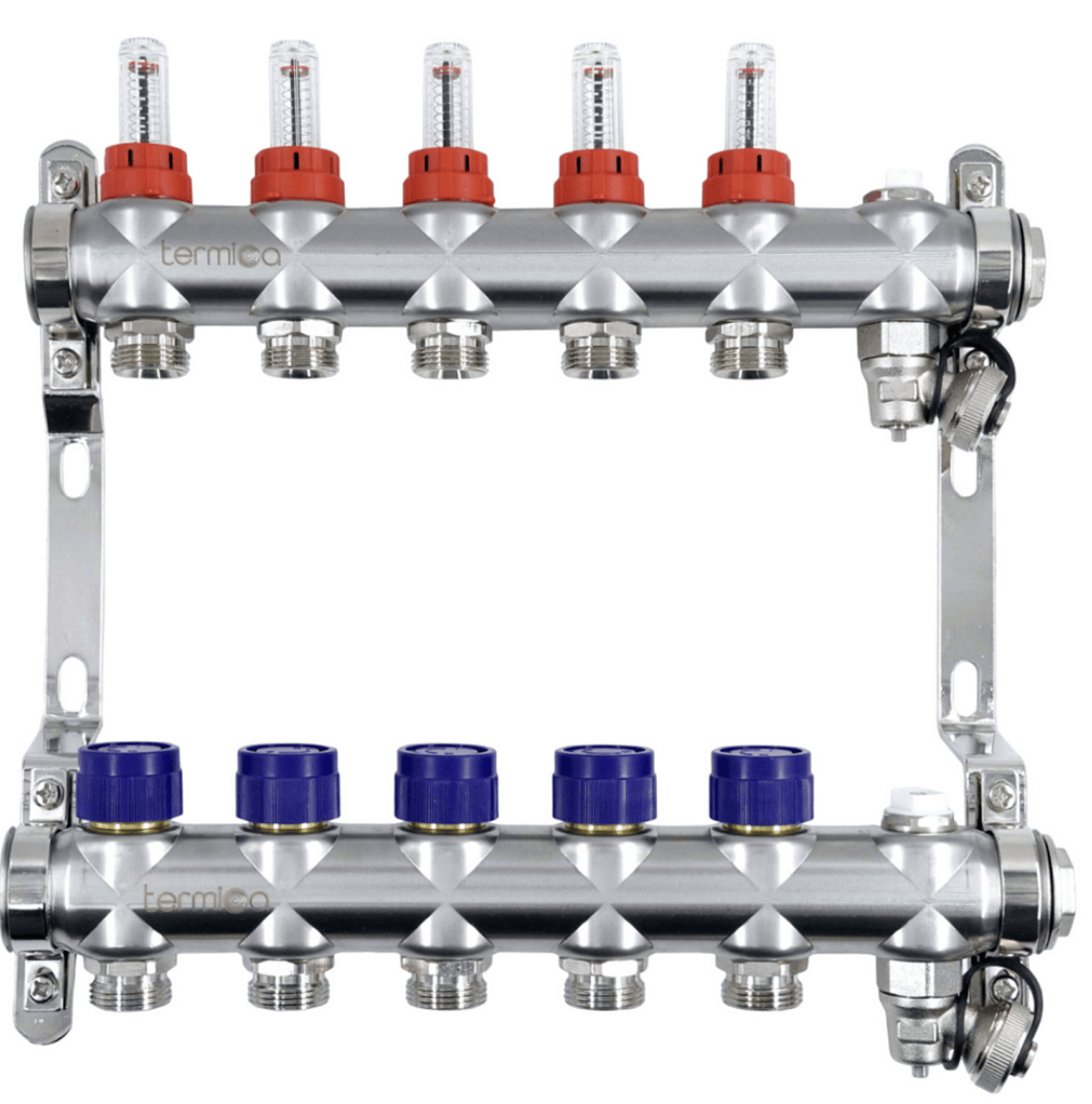 Распределительный коллектор TERMICA MEX12 из нержавеющей стали с расходомерами 12 выходов