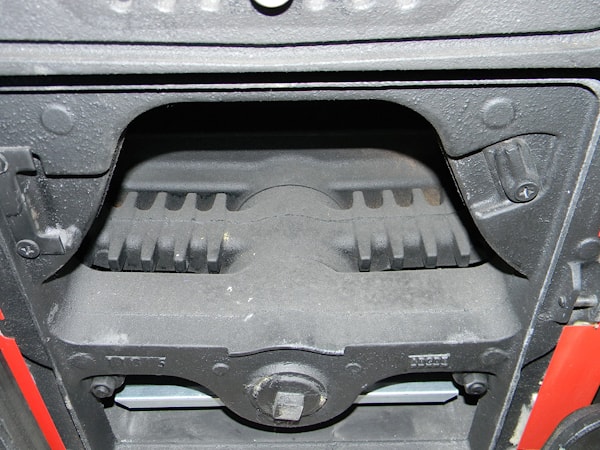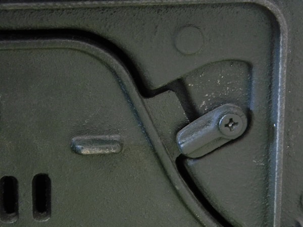 Заслонка подачи вторичного воздуха служит для регулировки интенсивности горения при использовании различных видов топлива (дров или угля). Механизм очень простой и надежный.