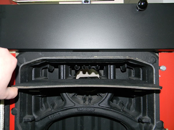 В верхней камере на передней секции установлена подвесная плита (отсекатель топочных газов), предотвращающая утечку продуктов горения при открытии дверцы. Кроме того, плита препятствует перегреву дверцы и способствует более эффективному теплообмену. Отсекатель легко снимается, что значительно упрощает процесс чистки газоходов.
