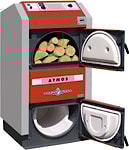 Все перечисленные котлы работают на естественной тяге. И лишь только ATMOS DC22S конструктивно предусматривает наличие вентилятора. Именно благодаря этому происходит контролируемая подача теплого первичного и вторичного воздуха в топку котла и увеличивается время горения. Твердотопливный котёл покупают не на год, и даже не на пять. Надёжность и долговечность – один из существенных факторов при выборе отопительного оборудования. Качество и толщина металла – очень важный показатель. Здесь первое место поделили между собой SAS и ATMOS. Сталь 6 мм. Казалось бы, разница с белорусским TIS небольшая. Но относительно срока службы даже 1 мм имеет значение. И опять же, только ATMOS использует в своих котлах специальную армированную керамику. Именно благодаря этому происходит полное сгорание топлива (убирать золу Вам придётся 1 раз в пять-семь дней) и увеличивается срок службы котла.