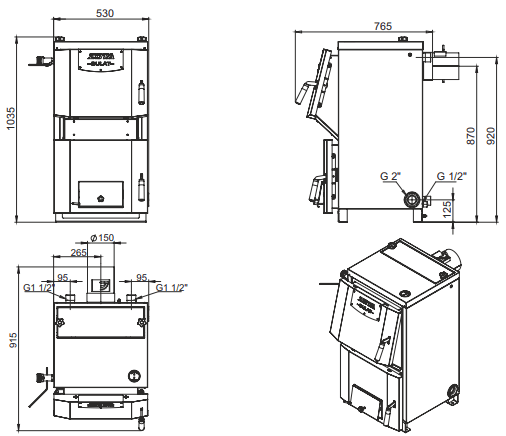 - Котел оснащен системой подачи вторичного воздуха, установлен термометр для измерения температуры подачи воды.