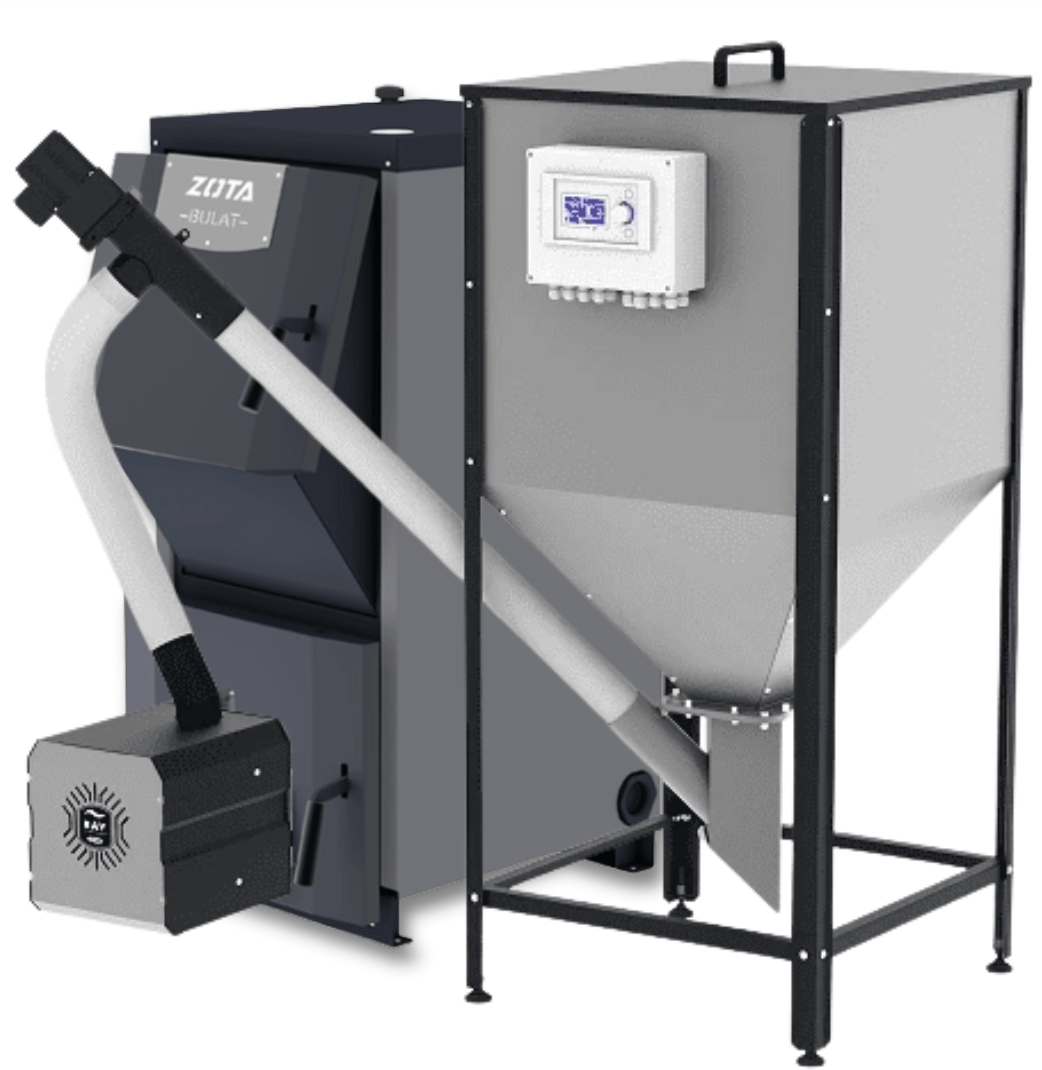 ZOTA Bulat 18 кВт пеллетный котел Пеллетная горелка, бункер для пеллет 200 литров, пульт управления горелкой, шнек