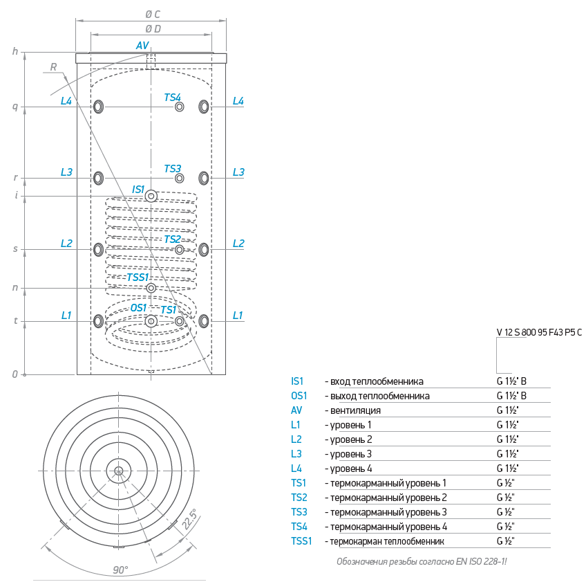 Буферная ёмкость TESY V 12 S 800 с теплообменником арт. 303889