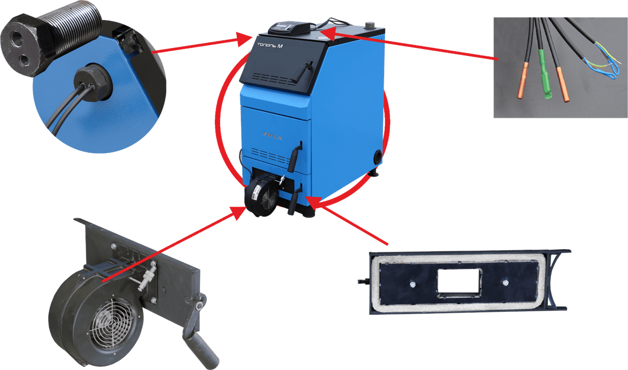 Комплект автоматики TurboSet для твердотопливных котлов предназначен для установки на котлы Zota Тополь-М 42 кВт.