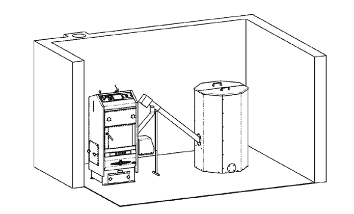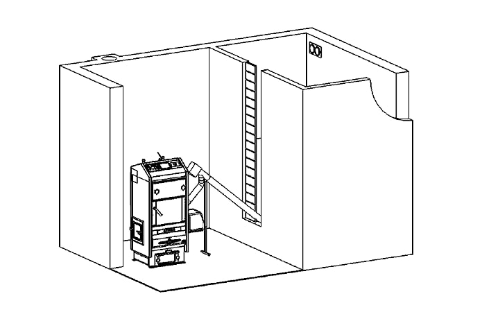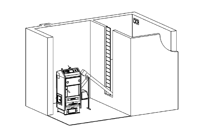 Для максимального удобства при монтаже автоматического пеллетного котла ATMOS D 14 P предусмотрена установка горелки с бункером для пеллет слева или справа от котла. Баки для пеллет могут быть объемом 250, 500 и 1000 литров. Если площадь котельной не позволяет разместить бак для пеллет рядом с котлом, его можно установить в соседнем помещении.
