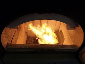 В случае, когда горелка получит указания к старту, транспортер засыпает пеллеты в сопло горелки и с помощью спирали накаливания происходит их розжиг. Когда пеллеты достаточно разгорятся, горелка переключится на заданную мощность, на которой останется до тех пор, пока вся система не протопится. Затем горелка отключится и пеллеты, оставшиеся в камере горелки, догорят и сжигание полностью прекратится. Весь цикл повторяется, при этом в горелку подается уже такое количество пеллет, которое необходимо для поддержания температуры в системе отопления или в помещении. Производительность котла и дальнейшая работа горелки управляются с помощью автоматики управления, которая позволяет настроить работу котла к конкретным условиям всей системы. Благодаря цикличной работе горелки, порционной подаче топлива и достаточно высокому КПД 95% экономия расхода пеллет за отопительный сезон составляет 20-30%.