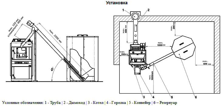 Возможные варианты установки твердотопливного котла для дров, брикета, пеллет ATMOS