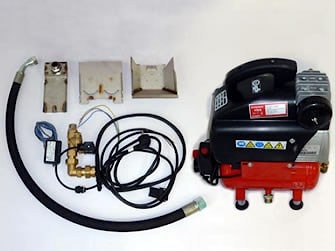 Пневматическая очистка пеллетной горелки.Пневматическая (компрессорная) очистка при помощи воздуха давлением 600 - 800 кПа выдувает из чаши горелки шлак и золу, образовавшуюся при использовании некачественных биотопливных пеллет.