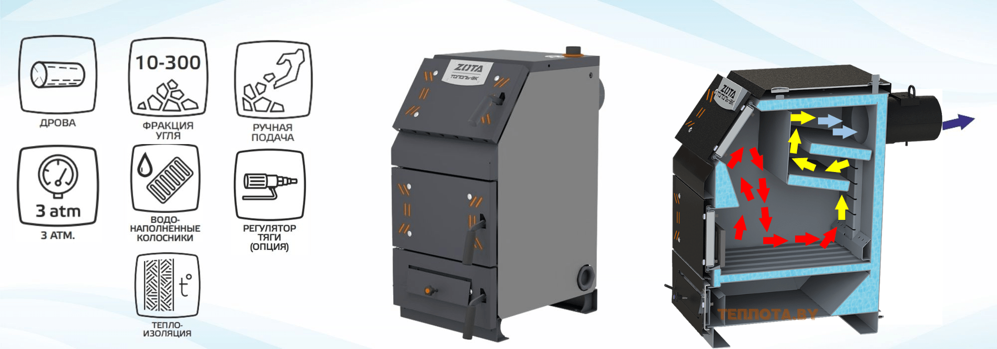 Технические характеристики твердотопливного котла отопления Зота Тополь-ВК 22 кВт