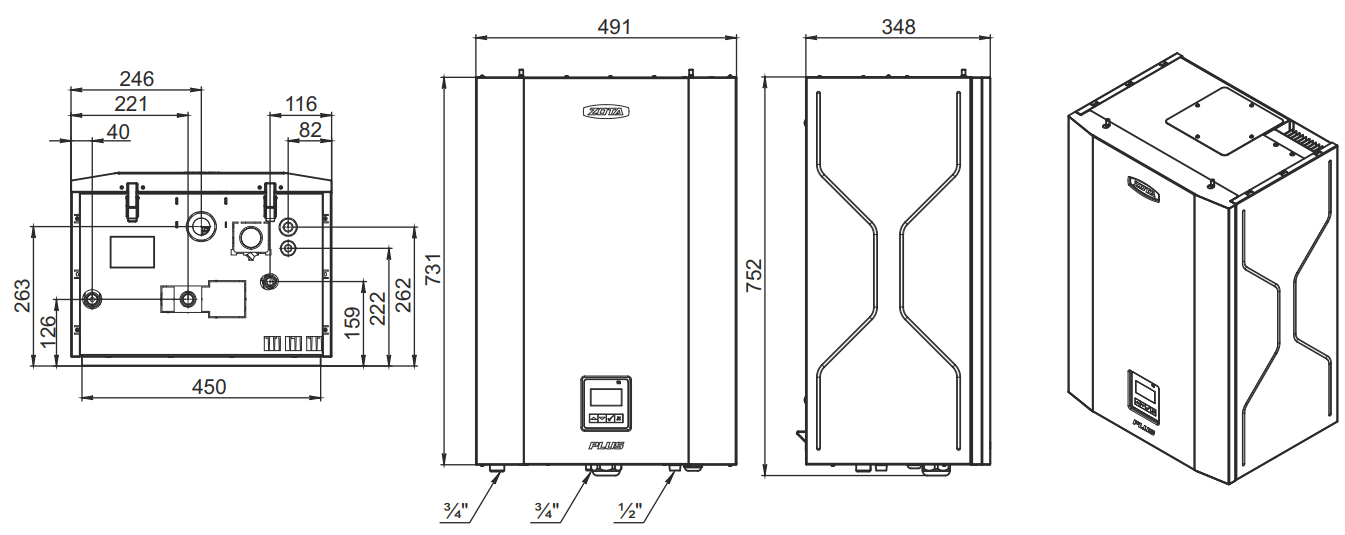 - мини-котельная это комплекс оборудования, собранный в одном корпусе: тэновый электрокотел с силовым блоком; блок управления; расширительный мембранный бак 12 литров; циркуляционный насос; группа безопасности;