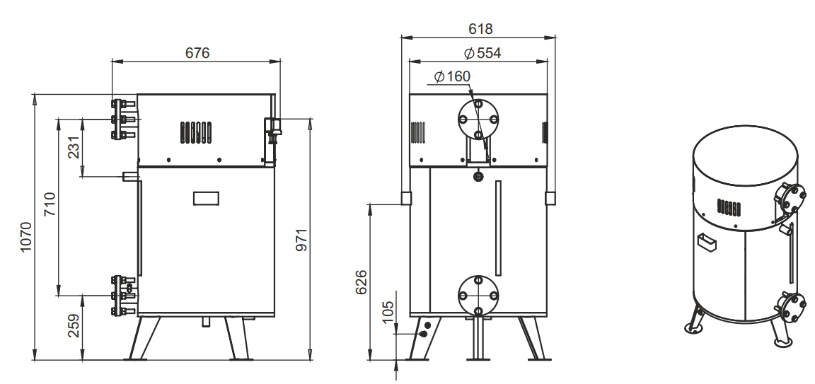 Габаритные размеры электрического котла ZOTA Prom - 80 кВт: