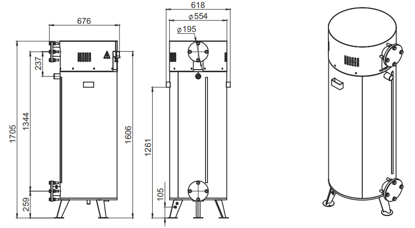 Габаритные размеры электрического котла ZOTA Prom - 400 кВт: