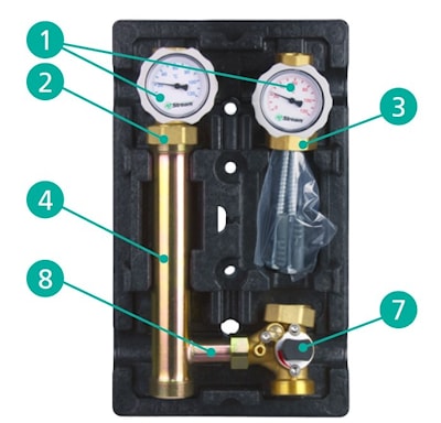 Комплект поставки группы быстрого монтажа с трехходовым смесительным клапаном ALTSTREAM: