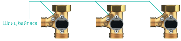 Дополнительный байпас смесительного клапана служит для увеличения уровня подмеса и обеспечения постоянного уровня подмеса в независимости от положения смесителя. Настройка байпаса производится в следующей последовательности: