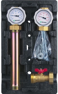 Все группы быстрого монтажа Altstream укомплектованы контактными термометрами в подающей и обратной линиях, что позволяет визуально оценить температурный перепад в контуре. В случае необходимости замена термометра производится путем извлечения из пластиковой рукоятки шарового крана при движении вдоль оси «на себя».