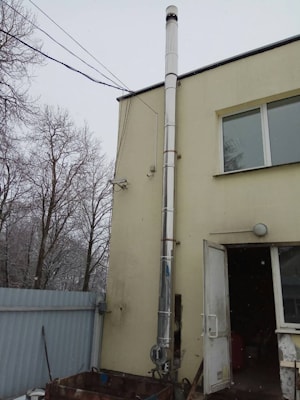 Газогенераторный котел Atmos DС 100 мощностью 99 кВт установлен на объекте в Минской области. Монтаж котла произведен стальной трубой с применением газосварочных работ.