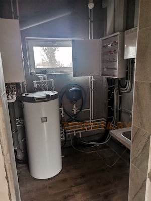 - В топочной установлен водонагреватель Draziceс электротеном и двумя теплообменниками. В перспективе данный водонагреватель возможно подсоединить к солнечным коллекторам для нагрева воды в межсезонье;