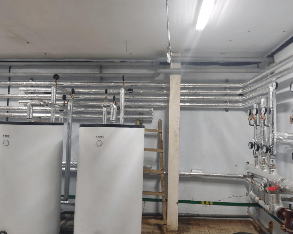 - Монтаж котла, водонагревателя и насосных групп произведен полипропиленом. Для минимизации теплопотерь все трубы максимально утеплены.