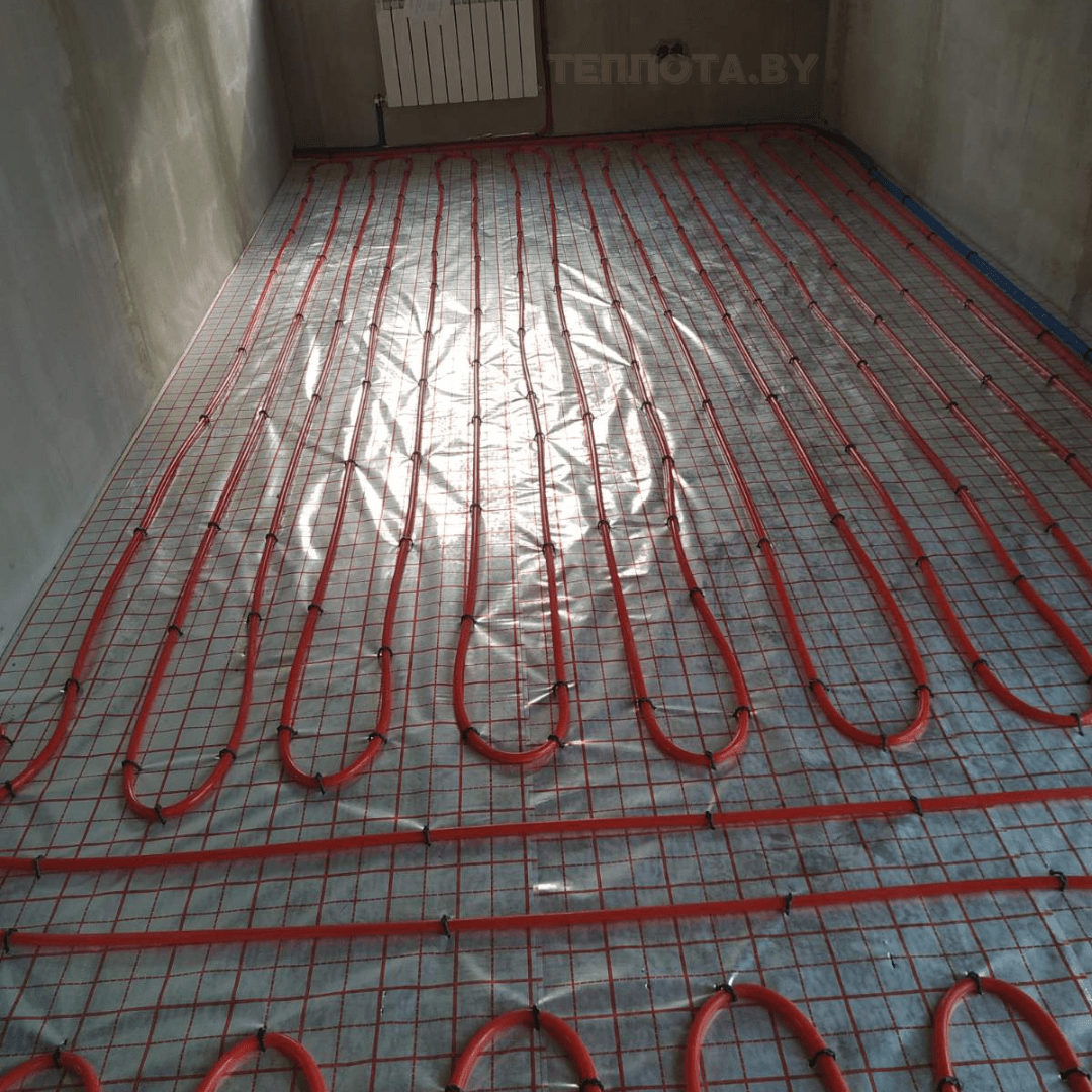 Водяной теплый пол смонтирован на заранее подготовленную заказчиком стяжку площадью 80 кв.м.