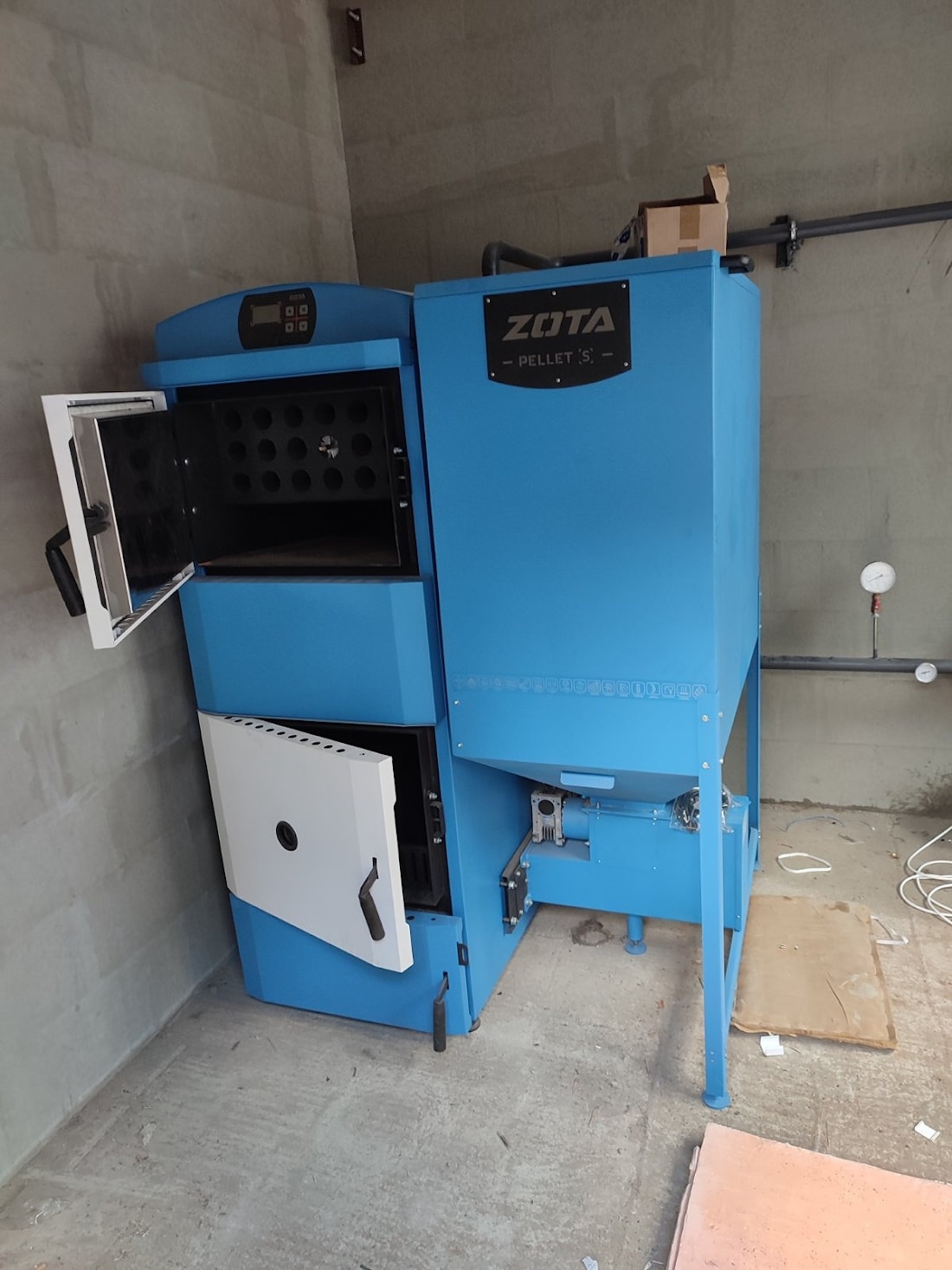 Монтаж и установка пеллетных котлов ZOTA Pellet S суммарной мощностью 260 кВт с тепловентиляторами. Обвязка котельной с аккумулирующей емкостью.