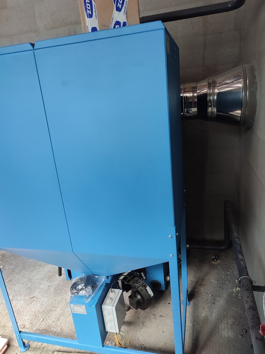Заказчиком было принято решение вместо газового котла установить пеллетный котел небольших размеров. Исходя из заданных параметров идеально подошел пеллетный котел OPOPBioPel 30 кВт с компактным бункером для пеллет.