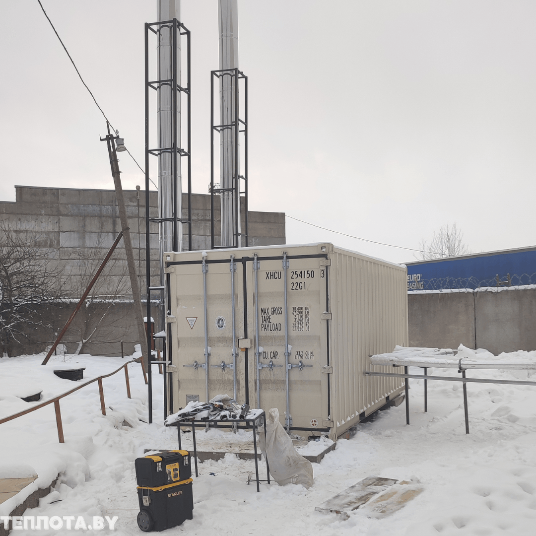 На производстве в Смолевичах произведен демонтаж старого твердотопливного котла и монтаж нового твердотопливного котла с дымоходом.