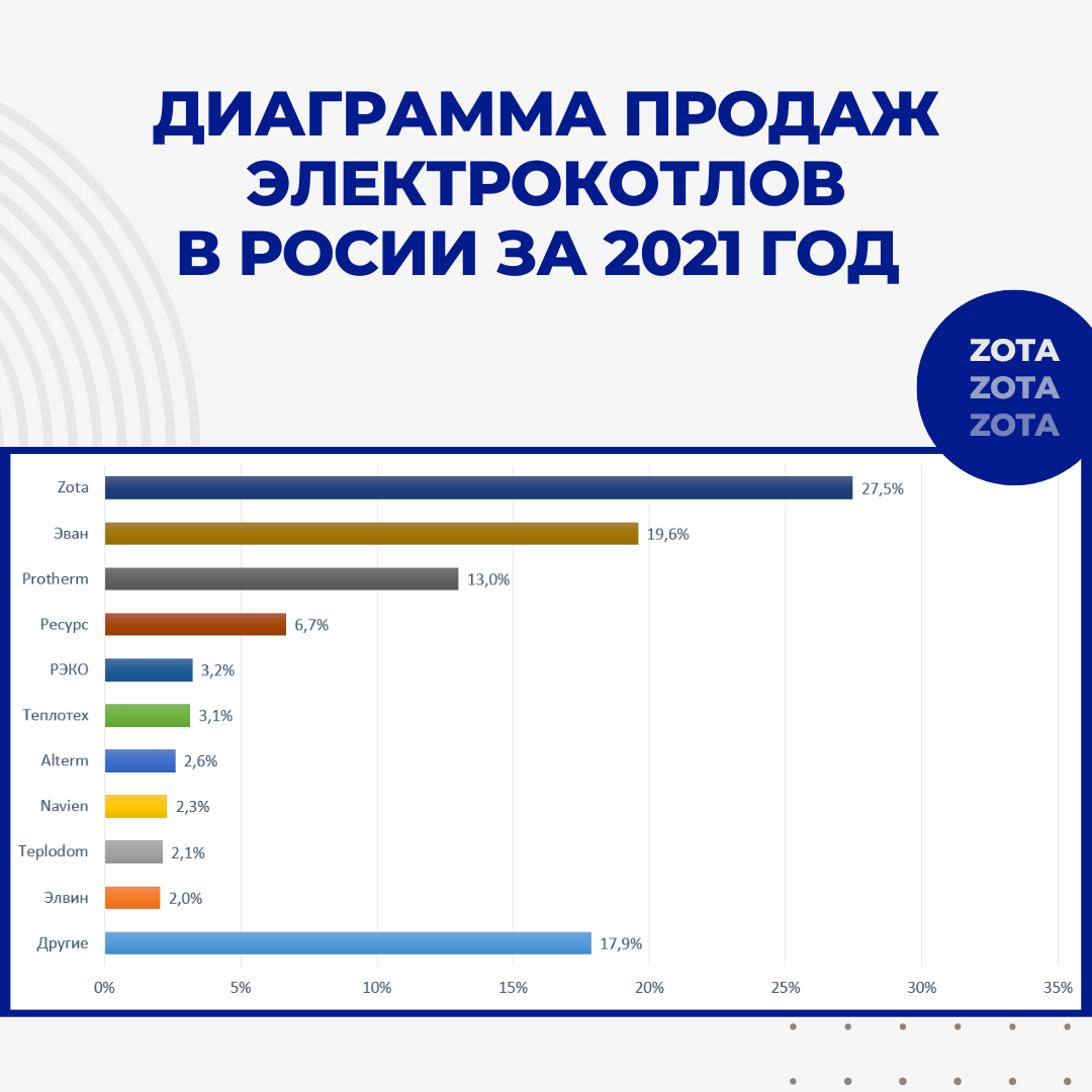 Не стоит скептически относиться к этому утверждению, т.к. сравнительный анализ всех российских производителей и собственный опыт в монтаже и обслуживании электрокотлов дает гарантированное подтверждение – электрические котлы ZOTA– сильный и уверенно опережающий всех российских производителей бренд. Например, многие производители электрокотлов используют медные ТЭНы, некоторые – ТЭНы из нержавеющей стали. В электрических котлах ZOTA установлены ТЭНы специальной запатентованной конструкции, собственной разработки завода.