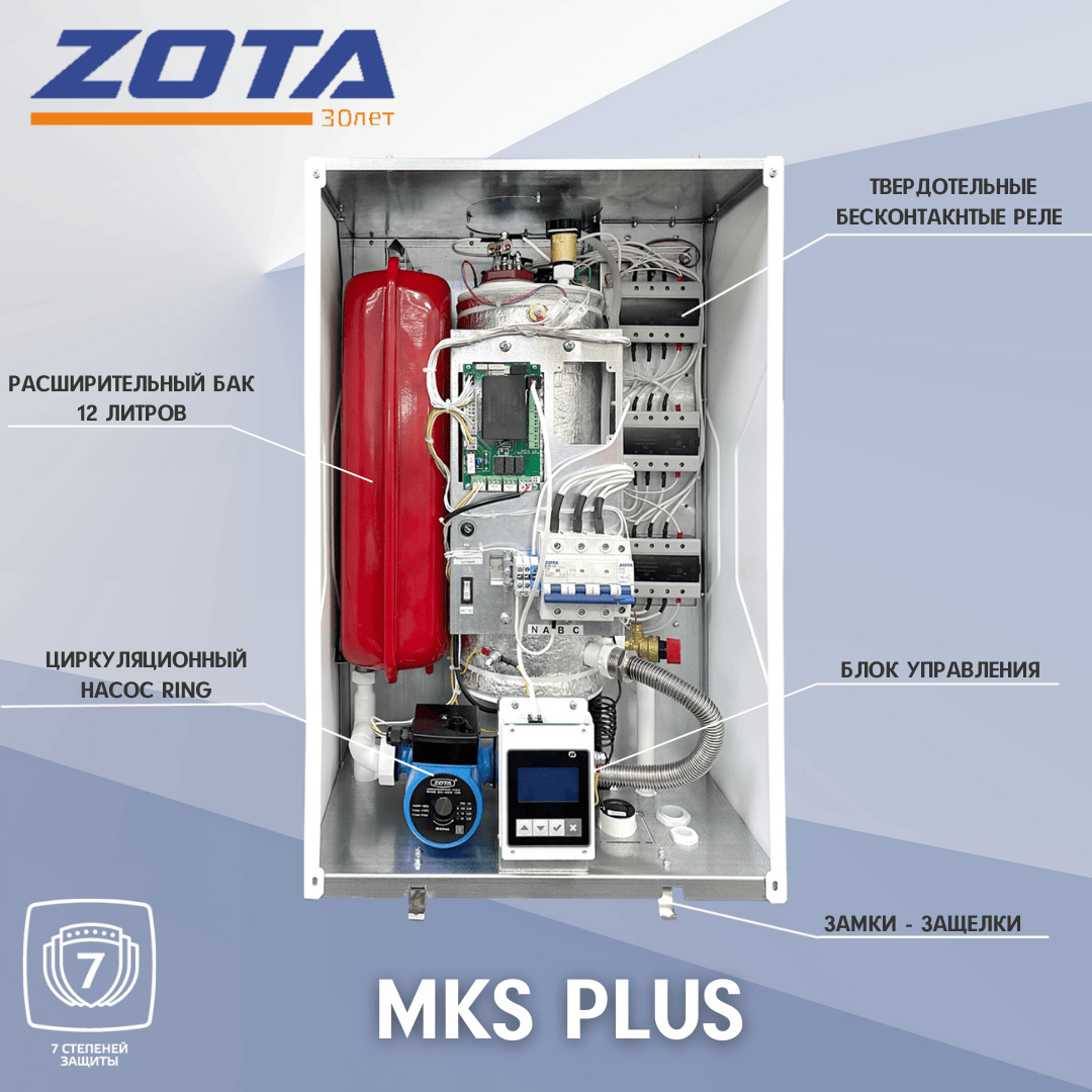 PLUS – это наличие в котлах твердотельного реле, отвечающего за бесконтактную коммутацию ТЭНов. Это значит, что электрокотлы ZOTA MKS PLUS отличаются бесшумной работой и по сути своей являются эталоном, на которого равняются конкуренты.