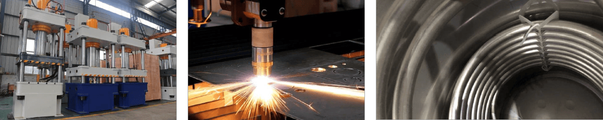 Линия по производству бойлеров косвенного нагрева TERMICA оснащена роботизированными аппаратами аргонно-дуговой и плазменной сварки, плазменной резки и гидравлическими прессами.
