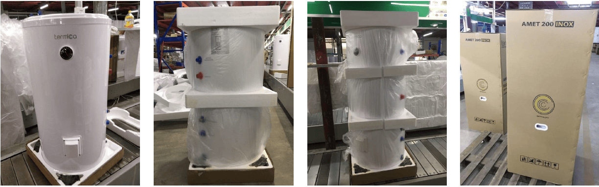Водонагреватели имеют картонную упаковку с жесткими вставками из пенопласта. Кроме того, наружная оболочка бака выполнена из гибкого пластика, спаянного в местах стыка. Всё это снижает риск повреждения ёмкости в момент транспортировки.