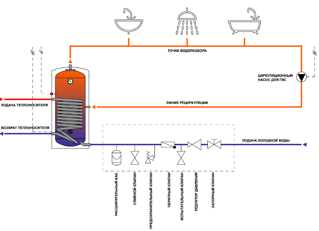 Схема установки водонагревателя косвенного нагрева TERMICA AMET INOX