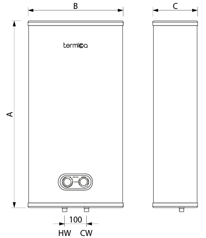 Универсальный монтаж. Водонагреватель TERMICA серии NEMO может быть установлен как в вертикальном, так и в горизонтальном положении. Глубина бойлера всего 29 см!