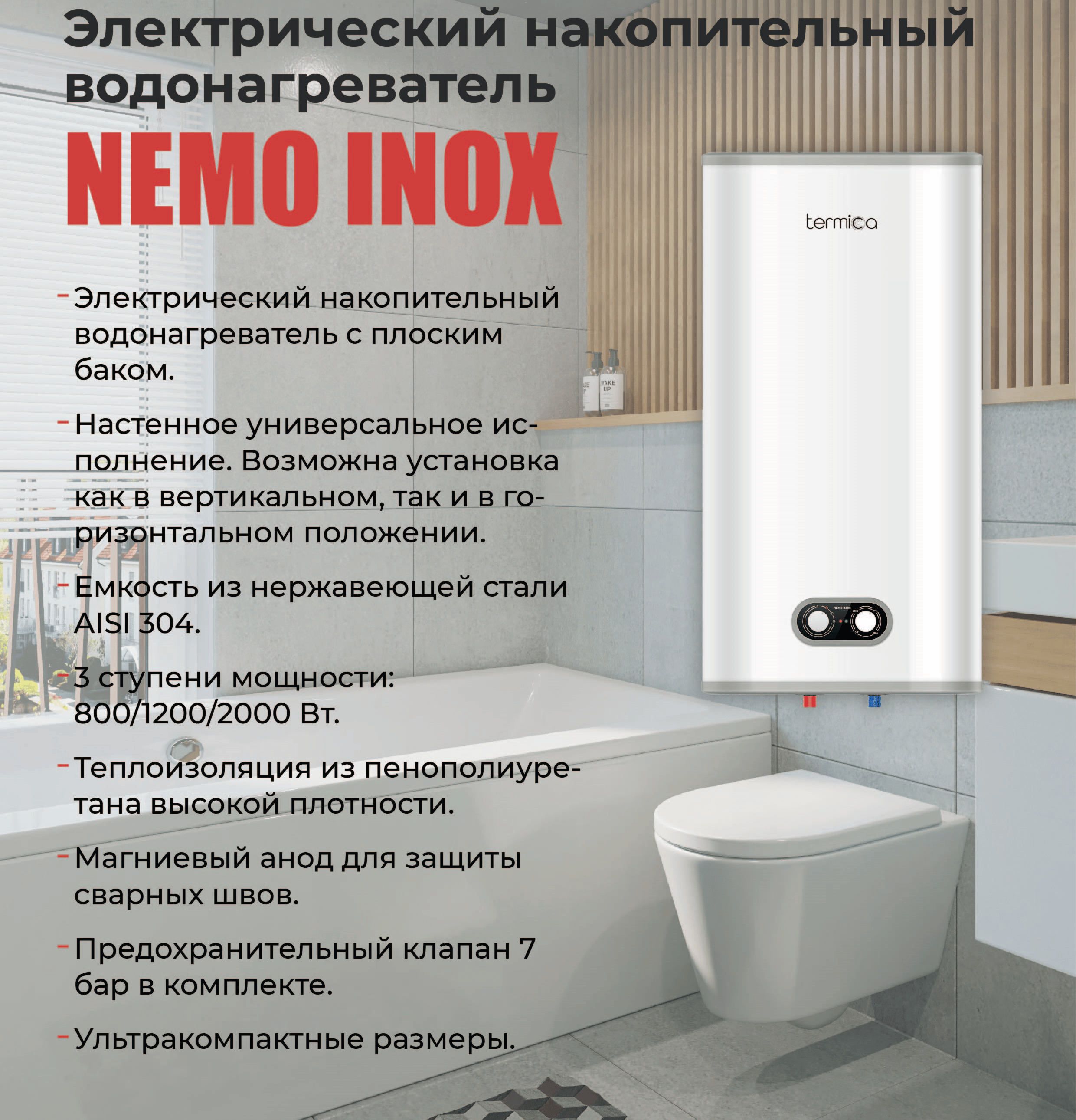 Преимущества электрического бойлера TERMICA (Термика) NEMO 100 INOX: