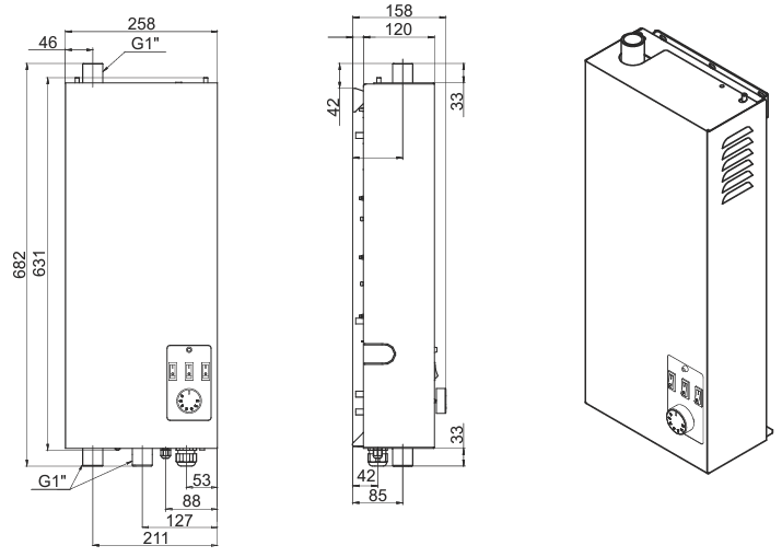 - Дополнительный патрубок 1/2" предназначен для подключения предохранительного клапана;