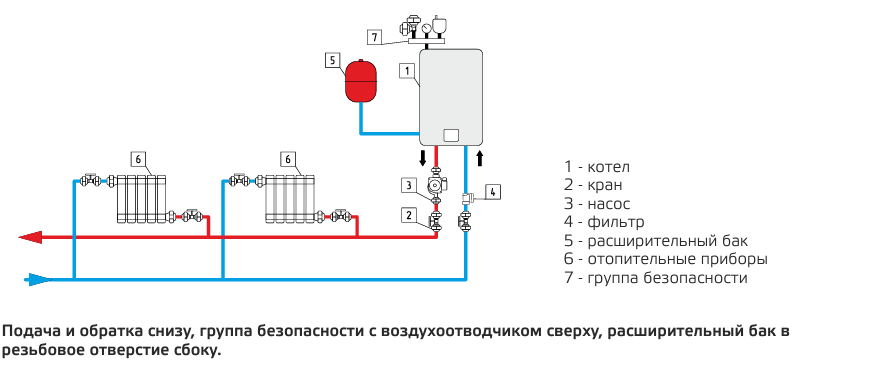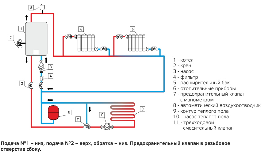 - А можно и вовсе использовать два патрубка сразу, получив два отопительных контура.