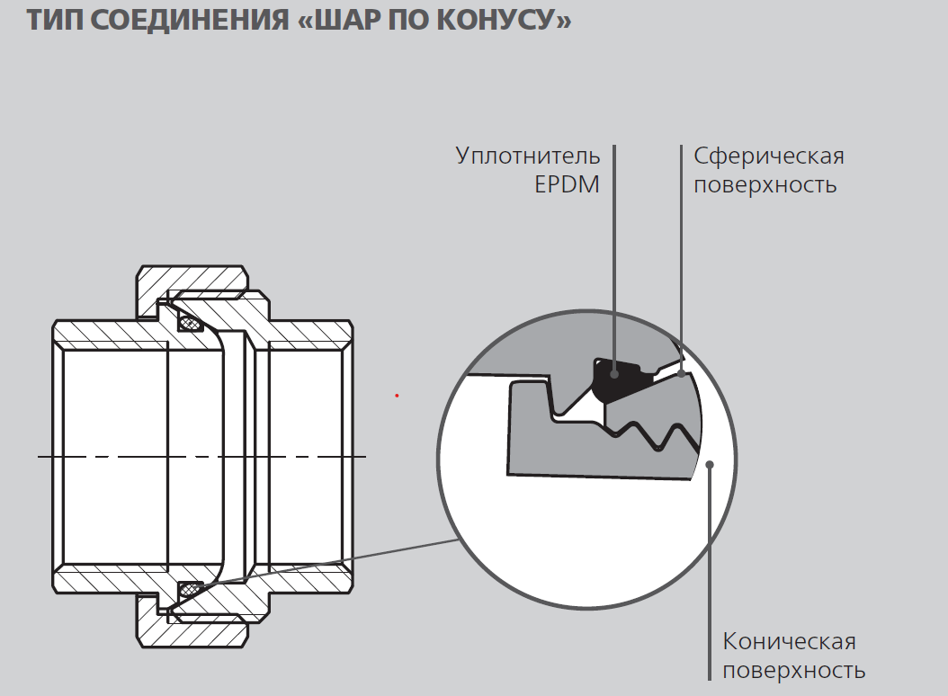 Разъемное соединение "Американка" с "Шар по Конусу": уникальное разъемное соединение типа "американка" с "шар по конусу" гарантирует максимальную надежность и долгий срок службы. Уплотнительное кольцо из EPDM обеспечивает дополнительную герметичность.